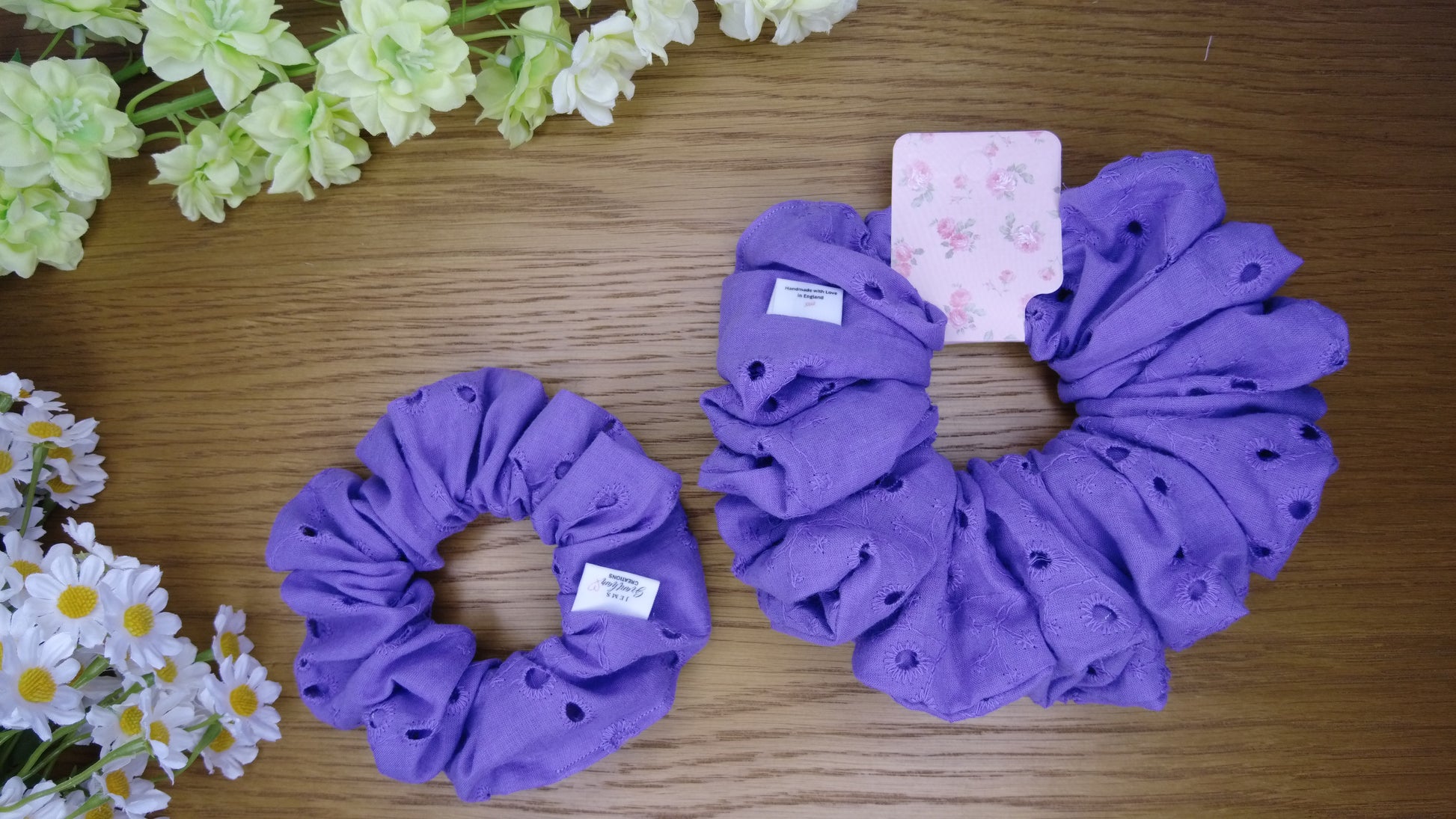 Scrunchies made of Embroidered Fabric available in regular and XL size.